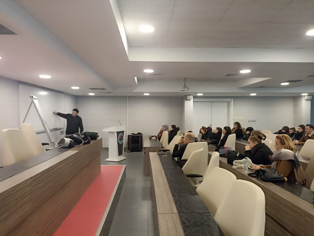 Seminerde Dr. Öğr. Üyesi Mehmet Emin Sardoğan, sınav sürecinde öğrencilerin yaşadığı kaygı ve stresin psikolojik temellerini ele alarak, bu süreçte en önemli noktanın bireyin kendini tanıması ve kişisel özelliklerinin farkında olması olduğunu vurguladı.