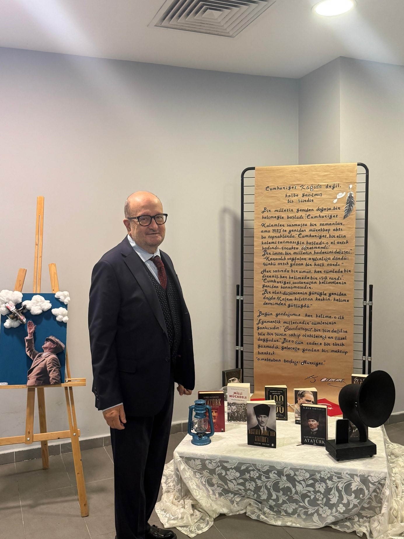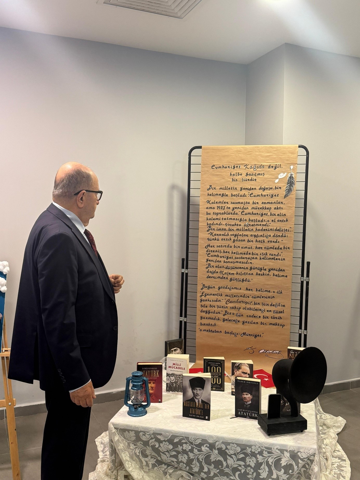 Törenin ardından, Sağlık Hizmetleri Meslek Yüksekokulu Çocuk Gelişimi Programı tarafından hazırlanan “Cumhuriyet ve Sanat: Atatürk’ün İzinde” sergisi ziyaretçilere açıldı. Sergide, Çocuk Gelişimi Programı öğrencilerinin sanat ve yaratıcılık dersi kapsamında ürettikleri Atatürk temalı üç boyutlu portre çalışmaları yer aldı.